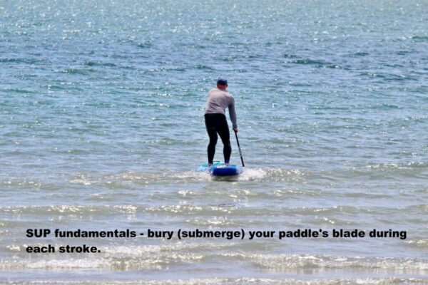SUP fundamentals – bury (submerge) your paddle’s blade during each stroke.